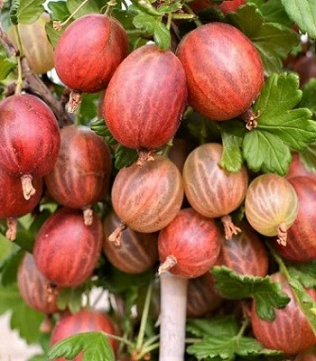Привита форма агрусу. Високоврожайний, практично безколючковий сорт середньо-пізнього терміну дозрівання. Ягоди середнього розміру, округлі, темно-червоного кольору, неопушені, з восковим нальотом, вагою від 3 г до 5 г, зібрані в кисті по 1-2 штуки. Шкірочка середньої товщини, щільна, зі слабким жилкуванням. На смак ягоди кисло-солодкі, дуже ніжні, освіжаючі, підходять для вживання в свіжому вигляді і для заготовок на зиму. Морозостійкий -32 С.Н залежить від висоти прививки
