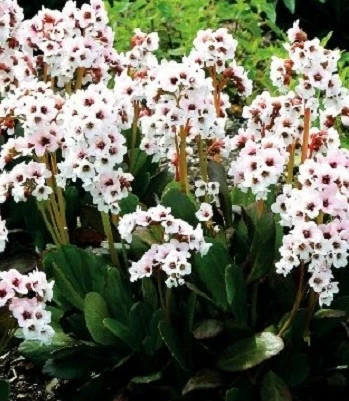 Вічнозелений сорт, що радує витонченістю суцвіть і пишними розетками орнаментальних листочків. Квіти напівмахрові, відкриваються майже білими, а потім починають повільно фарбуватися до світло-рожевого. Листя злегка довгасті, влітку глянцеві зелені, а до осені починають набирати червоність до темного винно-червоного кольору. Завдяки гарним листям зберігає привабливий вигляд навіть після закінчення цвітіння, весь вегетативний період. Добре розвивається на добре дренованих, зволожених грунтах. Є гарною прикрасою клумб, в поєднанні з невисокими багаторічниками і папороттю, по сусідству з низькорослими сортами садових квітів. Морозостійкий.Н: 0,3-0,4 м, d-0,2-0,3 м.