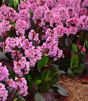 Дивовижний сорт з невеликим вузьким листям, що до зими набуває червоно-фіолетових відтінків, а на їхніх краях з'являються незвичайні зубчики. Декоративності сорту додають і рожево-вишневі квіти, що з'являються вже у березні. Росте на будь-якій добре дренованій ділянці. Вологолюбивий і морозостійкий. Добре підходить для декору штучних водойм, ефектний в якості бордюрної рослини.Н: 0,2-0,4 м, d-0,3 м.