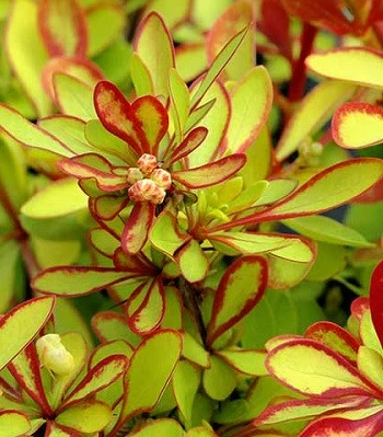 Сорт має особливу форму і забарвлення листя, що робить його привабливим серед любителів красивого. Листя дрібні, з мінливим забарвленням, навесні ніжно-рожеві з червоною облямівкою, влітку мають яскраво жовте забарвлення, восени стають помаранчевими. На пагонах розташовані досить щільно, завдяки чому, кущ має майже правильну кулясту форму. До грунтів невимогливий, може виростати на грунтах з будь-якою кислотністю. Морозостійкий. Посадка 2-4 шт/м2.Н: 0,5-0,7 м, d-0,5 м