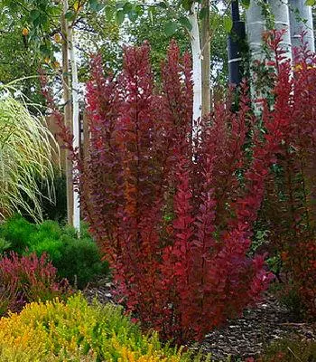 Один з найпривабливіших вертикальних колонновидних форм. Його червонувато-фіолетові листя восени стають червоними.Барбарис Тунберга "Ред Піллар" відрізняється колоновидною, вертикальною кроною з невеликими річними приростами і насичено червонувато-пурпурно-фіолетовим листям. З віком крона стає розлогою. Квітне в травні, жовтими квітами з червоною зовнішньою стороною. Плоди червоні, еліпсоподібні, дозрівають у вересні і довго тримаються на рослині. До грунтів невимогливий. Ідеальний як солітер на газоні, в групових посадках, як акцент в деревно-чагарникових композиціях, в стрижених і вільно зростаючих огорожах, бордюрах, в змішаних посадках з багаторічниками.