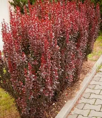 Один з найпривабливіших вертикальних колонновидних форм. Його червонувато-фіолетові листя восени стають червоними.Барбарис Тунберга "Ред Піллар" відрізняється колоновидною, вертикальною кроною з невеликими річними приростами і насичено червонувато-пурпурно-фіолетовим листям. Квітне в травні, жовтими квітами з червоною зовнішньою стороною. Плоди червоні, еліпсоподібні, дозрівають у вересні і довго тримаються на рослині. До грунтів не вимогливий. Ідеальний як солітер на газоні, в групових посадках, як акцент в деревно-чагарникових композиціях, в стрижених і вільно зростаючих огорожах, бордюрах, в змішаних посадках з багаторічниками. З віком крона стає розлогою, посадка 2 шт./м2.