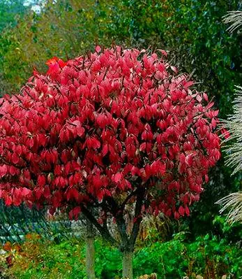 Повільно зростаючий листопадний кущ з широкорозкидистою, густо розгалуженою кроною. Листя оберненояйцевидні або еліптичні, зелені, з нижнього боку світліші, довжиною 3 - 5 см. Декоративний завдяки осінньому кармін-червоному забарвленню лястя, окремий лист може бути пофарбований одночасно до 5 спектрів кольорової гами. Рясно квітне в травні-червні красивими жовтувато-зеленими, але дрібними, малопомітними квіточками, що переходять у дивовижні плоди. На тлі ще зеленого листя гірлянди яскравих плодів виглядають привабливо. Чудово піддається формуванню, можна формувати у вигляді деревця. Відмінний для невеликих присадибних ділянок; для рівної стриженої огорожі, бордюрів; в рабатках; на кам'янистих гірках; ефектно виглядає в деревно-чагарникових композиціях.Н-2,0-3,0 м, d-2,0-3,0 м