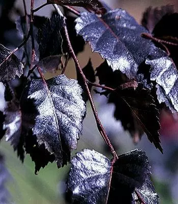 Ефектний сорт берези з вузькою, конічною, прорідженою кроною із звисаючими пагонами. Декоративності цьому сорту додають ромбовидні, незвичайно яскравого забарвлення листя (влітку темно-пурпурові, а восени перефарбовуються в коричнево-червоний колір). Невимоглива до грунту. Перевага сорту в тому, що він характеризується повільним зростанням і досить компактними розмірами, що дозволяє його вирощувати на невеликих ділянках.Н: 10,0 м, d-5,0 м