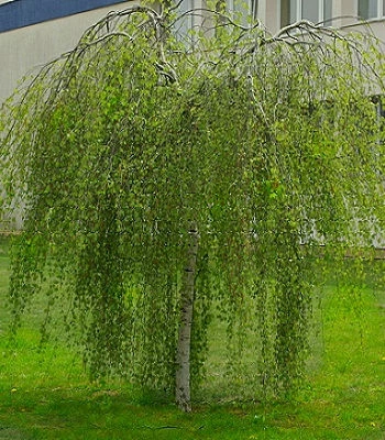 Привита форма берези. Дуже витончена, густо розгалужена плакуча форма берези із парасолеподібною кроною і вертикально звисаючими пагонами, які часто дістають землі. Кора біла, гладенька. Листя світло-зеленого кольору, розпускаються рано весною, а осінню стають жовтими. Невибаглива, дуже зимостійка. Чудова у вигляді солітера, для невеликих садів і присадибних ділянок, оформлення берегової лінії водойм.Н: залежить від висоти прививки,
