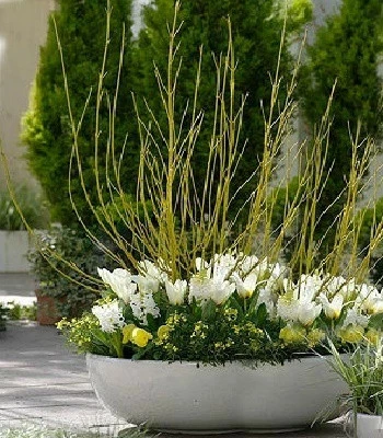 По праву заслужив найпоширеніше застосування в озелененні, не тільки за свою невибагливість, але і через високі -декоративні властивості. Навесні і восени пагони жовто-оливкові або зеленувато-оливкові. Листя загострені, овальні, зелені глянцеві. Восени можлива зміна забарвлення в червонуваті тони. Квіти жовтувато-білі в щитковидних суцвіттях. У серпні дозрівають білі плоди. Не примхливий, росте на будь якому, вологому грунті. Не любить посухи. Вражаюче виглядає в комбінації з хвойними, багаторічниками, відмінний і в одиночній посадці. З його допомогою можна створити вражаючі ландшафтні композиції біля водойм, серед каменів, в альпінаріях, міксбордерах.Н: 2,0-3,0 м, d-2,0-3,0 м
