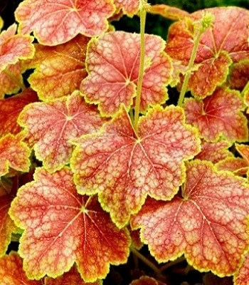 Цей сорт стане перлиною тінистого саду завдяки чудовим листям, що змінює своє забарвлення зі світло зеленого ранньою весною, до яскраво-жовтого з червоними прожилками і декоративними оранжево-червоними плямами, так і невеликими мереживними кремово-жовтими квітами. Різноманітна гама кольору листя дозволяє створювати красиві композиції з одних тільки гейхер,а саме для посадки уздовж доріжок, які ведуть до будинку, на парадних клумбах. Морозостійкий.Н: 0,3-0,5 м, d-0,3 м.