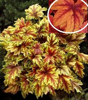 Цей сорт по справжньому вражає своїми неймовірно ефектними, сильно розрізаними, пір'ястими яскраво-жовтими листочками з рубіново-червоним центром уздовж жилок. Квітне білими квітами. У повній тіні зеленіє. Надає перевагу добре дренованим грунтам. Ефектно виглядає в рокарії, альпінаріях і великих квітниках на передньому план, а також висадженою у великих вазонах для прикраси терас, альтанок або веранди. Морозостійкий.Н: 0,2-0,4 м, d 0,4 м.
