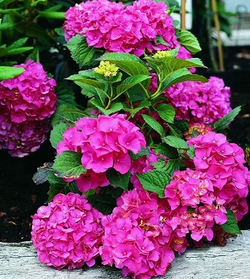 Квіти зібрані в великі суцвіття ( діаметром 15-30 см) яскраво - малинового забарвлення, при розпусканні у квіток білувато - зелена серцевина, яка потім забарвлюється в основний відтінок. Листочки дуже великі, зелені, блискучі, дуже декоративні. Добре розвивається на слабокислих, помірно вологих, добре дренованих грунтах. Морозостійкий. Чудово виглядає поодиноко, в створенні деревно - чагарникових груп, в композиціях, в живоплоті і як контейнерна рослина. Це знахідка для флористів, її суцвіття шикарно виглядають у квіткових композиціях.Н: 1,0-1,3 м, d-1,0-1,3 м