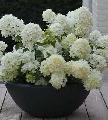 Абсолютна новинка серед гортензій. Характерною особливістю є її мініатюрна висота. Незважаючи на свої невеликі розміри, вона дає великі суцвіття, як у випадку з іншими метельчатими гортензіями, до 25 см. Квіти білі, кремового кольору, у міру розпускання стають рожевими, а в теплі дні вони мають легкий запах. Листя темно - зелене. Віддає перевагу родючим, пухким, кислим грунтам. Ідеально підходить для невеликих садів. Ефектно виглядає висадженою в декоративний контейнер, патіо.Н: 0,5-1,0 м, d-0,5-1,0 м