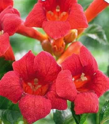 Сильноросла ліана, особливості якій надають декоративні, трубчасті темно-червоні квіти. Цвітіння починається на 2-3 рік після посадки. Віддає перевагу добре дренованим, родючим грунтам, теплим, сонячним ділянкам, захищених від вітру. Ідеальна для покриття стін і потужних опор, альтанок. Як і більшість ліан, кампсіс терпимий до обрізки, тому при бажанні цій рослині можна надати найрізноманітнішу форму. В регіонах з суворими зимами вимагає укриття.Н: 6,0-10,0 м.