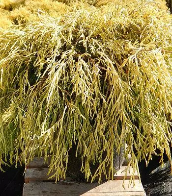 Ефектний карликовий сорт подушковидної або округлої форми з золотисто-зеленою хвоєю. Пагони густо розгалужені, дугоподібно вигнуті, ниткоподібні, довгі. Хвоя золотисто-жовта або зелено-золотиста, лусковидна, притиснута, зберігає забарвлення взимку. Плоди - округлі, коричневі шишки, діаметром від 0,6 до 1 см. Віддає перевагу вологим, добре дренованим, злегка підкисленим грунтам. Гармонічно виглядатиме в альпійських гірках, на передньому плані клумб та міксбордерів, при створенні бордюрів.Для забезпечення гарного вигляду та росту рослини рекомендується вносити добрива.(Для ознайомлення заходьте в розділ ДОБРИВА,ЗАСОБИ ЗАХИСТУ,ГРУНТИ).