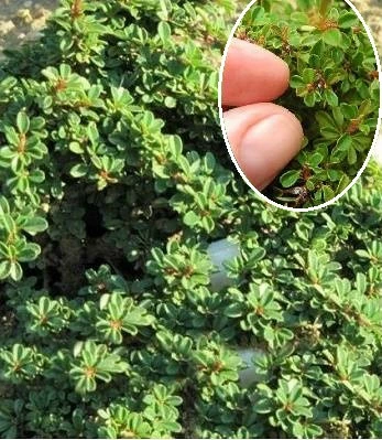 Найпривабливіший з мініатюрних сортів з дуже дрібними прилеглими до пагонів темно - зеленими листочками. Листя яйцевидні, блискучі, найдрібніші з усіх кизильників, густо розташовані на пагонах. Квітне білими квітами. Декоративності сорту додають яскраво-червоні ягоди, що залишаються до кінця зими. Віддає перевагу вологому, добре дренованому грунту. Ефектний в одиночних і групових посадках на альпійській гірці.Н: 0,1-0,15 м, d-0,5 м.