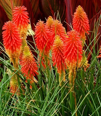 Екзотичний багаторічник, який утворює густий кущик із вузьких листків, що нагадують злакові. Вражає своїми довгими трубчастими квітами, які в нижній частині жовті, а у верхній яскраво-помаранчеві, що з гордістю підносяться вгору вище трави. Віддає перевагу родючим, середньої вологості грунтам. Декоративність цієї невибагливої рослини зберігається протягом усього сезону. Молоді рослини рекомендується на зиму вкривати.Н: 0,4-0,5 м, d 0,4-0,5 м.