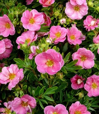 Вважається кращим сортом серед рожево квітучих лапчаток. Низький густий компактний кущ з щільною, подушковидною, сланкою кроною. Квітне довго і рясно з травня по жовтень, з нетиповим для виду, яскраво-рожевими 5 см квітами. Листя дрібні, завдовжки 2-3 см, ніжно-зелені з сріблястим відтінком. Маловимогливий, виносить добре дреновані садові ґрунти. Переносить тимчасову засуху. Ідеально підходить для посадки в групах, альпійських гірках, в бордюрах, як солітер.Н: 0,5-0,6 м, d 0,8 м.