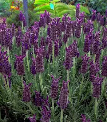 «Blue Star»-улюблений іспанський різновид лаванди. Відрізняється красивим сіро-зеленим листям і квітковими головками, темно-фіолетового кольору. Квітка має форму соснової шишки, яка випускає аромат евкаліпта. Квітне безперервно з травня по жовтень. До грунту не вимогливий. Стійкий до посухи, але в посушливий період потребує помірного поливу. Для формування пишних і красивих кущів рекомендується весняна обрізка. Ідеальний в бордюрах вздовж доріжок.Н: 0,4-0,5 м, d-0,5-0,7 м.