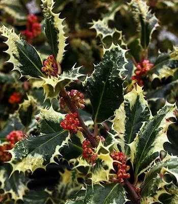Вічнозелений сорт з густою, ширококонічною формою крони. Декоративний за рахунок шкірястого, зеленого листя з широкою нерівномірною кремово-білою облямівкою, на деякій листовій пластинці містяться плями такого ж кольору. Край листя дуже хвилястий і колючий, що надає йому ще більшої декоративності. Віддає перевагу легким, поживним, вологим грунам без застою води. Відмінно піддається фігурній стрижці, завдяки цьому утворює колючі, непрохідні, щільні, формовані або вільно зростаючі живоплоти.Н-2,0 м, d-2,0-2,5 м