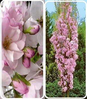 Невисоке, колоновидне деревце із вертикальними пагонами, що приємно здивує Вас ароматними, ошатними квітами ранньою весною. Квіти світло-рожеві (слабо-махрові), діаметром 4 см, зібрані по 3-5 шт у суцвіття. Надає перевагу вологим, родючим, добре дренованим грунтам. Ідеально підходить для озеленення в одиночних і групових посадках, в якості солітера. Завдяки своїй вузькій кроні, її можна садити навіть поблизу від фундаменту будинку.Н: 4,0-5,0 м, d-1,0-2,0 м