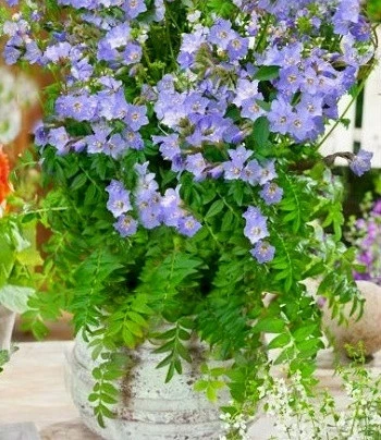 Характеризується декоративною красою і листя, і квіток. Квіти ароматні, блакитні з помаранчевими тичинками, які трохи довше пелюсток, з'єднані у суцвіття, нагадують флокс. Листя зелені, розсічені, загострені на кінцях - папоротеподібні. Невибагливість, морозостійкість, легкість в догляді робить рослину знахідкою для використання в декоративному квітникарстві: в бордюрі вздовж доріжок, альпінаріях.Н-0,2-0,4 м, d-0,3 м