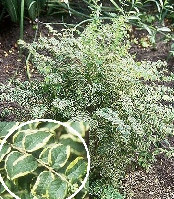 Компактний сорт округлої форми з цікавим забарвленням листя. Листя еліптичні, регулярні, супротивно розташовані на пагонах, темно-зелені з яскраво-жовтою облямівкою. Пагони декоративні дугоподібно зігнуті. Дуже добре переносить стрижку. Ідеальний для будь якого озеленення, для низьких живих огорож.Н: 1,0-1,5 м, d-2,0 м