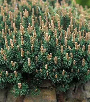 Одна із самих повільноростучих карликових сосен з кулястою формою крони. Хвоя голчаста, дуже коротка, темно-зелена, зібрана по 2 в пучки. Декоративним ефектом в зимовий час можна вважати червоно-коричневі бруньки. Світлолюбна, але виносить невелике затінення. Абсолютно не вимоглива до грунтів. Чудова в одиночних і групових посадках, в альпінаріях і кам'янистих композиціях.Для забезпечення гарного вигляду та росту рослини рекомендується вносити добрива. (Для ознайомлення заходьте в розділ ДОБРИВА, ЗАСОБИ ЗАХИСТУ, ГРУНТИ).