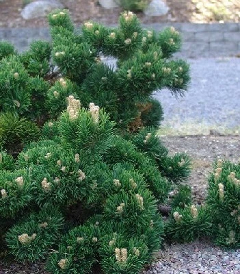 Сорт відрізняється незвичайною формою, яка нагадує бонсай. Хвоїнки темно-зелені, вигнуті, густо зростаючі, утворюють на кінцях сірих пагонів щільні «помпони». Вигнуті, товсті пагони прагнуть прийняти горизонтальне положення. З віком підстави пагонів оголюються. Сорт повністю морозостійкий, невимогливий. Це справжній бонсай, який буде прекрасно виглядати на газонах, в невеликих ландшафтних композиціях, рокарії і альпінаріях. Може вирощуватися в декоративних контейнерах.Для забезпечення гарного вигляду та росту рослини рекомендується вносити добрива.(Для ознайомлення заходьте в розділ ДОБРИВА,ЗАСОБИ ЗАХИСТУ,ГРУНТИ).
