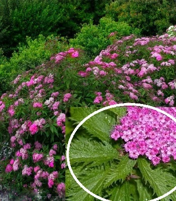 Відмінна бордюрна рослина. "Crispa" - низькорослий сорт з густою, кулястою кроною. Декоративний не тільки завдяки яскраво рожевим суцвіттям, але й оригінальним зубчастим листочкам з хвилястим краєм, що надає рослині ажурності. При розпусканні листя винно-червоні, а пізніше зелені. Квіти зібрані в прості суцвіття і з'являються тільки на кінцях торішніх пагонів. Максимальний діаметр суцвіття становить 6 см. Для більш тривалого цвітіння рекомендується видаляти відцвілі суцвіття. Добре розвивається на родючих, помірно вологих, дренованих грунтах з слабокислою і нейтральної реакцією. Зимостійкий. Чудовий при створенні низьких живоплотів, складних квітників, альпійських гірок.Н: 0,5 м, d 0,5 м.