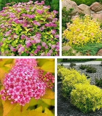 Неперевершено красивий, карликовий сорт, що ціниться оригінальною яскраво - жовтою окраскою листя. Квіти рожеві зібрані у щитковидні суцвіття. Надає первагу сонячним ділянкам (в тіні втрачає золотисте забарвлення). До грунту невимогливий, але віддає перевагу вологим, родючим та пухким грунтам. Цей маленький карликовий кущ здатний прикрасити будь-який куточок вашого саду, він невибагливий, декоративний не тільки цвітінням, а й кольором листя. Відмінний для створення низьких бордюрів, контрастних композицій. Він прикрасить міксбордери, рабатки, альпінарії, гармонійно виглядатиме з хвойними, трав'яними та іншими листяними рослинами.Н: 0,3-0,5 м, d-0,5-0,8 м