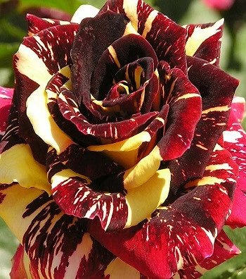 При замовленні будь-яких троянд (що за ціною 55 грн) 10-ти і більше штук -1 шт - 49 грн.Це одна з найбільш незвичайних троянд. Квітне дуже яскраво і приголомшливо. Квіти цієї троянди махрові, червоні з жовтими смугами, діаметром від 7 до 10 см, поодиноко розташовані на високому квітконосі або в суцвіттях, з високим центром і загостреною формою пелюсток, з приємним стійким ароматом. Чудово квітне все літо з невеликою перервою в липні, радуючи своїм ефектним виглядом. Листя зелене, глянцеве. Відмінно підходять для зрізання, зберігаючи забарвлення та аромат до 2 тижнів