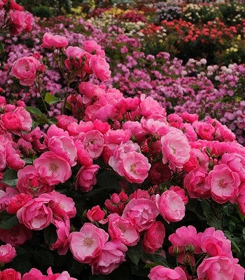 Особливий сорт з світло - рожевими квітами з чітким малиновим реверсом. Вони з'являються в дуже великих кистях по 1-5 штук і не розкриваються повністю, при цьому добре видно контраст між червоною зовнішньою стороною і рожевим центром. Мають м'який аромат. Розмір квіток 3-4 см. Віддають перевагу добре дренованим, родючим грунтам. Чудові для бордюрних посадок, розаріїв, вирощування в контейнерах і вазонах, також в зрізку. Зимостійкий. Дуже висока стійкість до спеки, дощу, до захворювань.Н-0,5-0,8 м. d-1,5 м