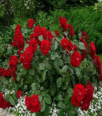 При замовленні будь-яких троянд (що за ціною 55 грн) 10-ти і більше штук -1 шт - 49 грн.Квітки темно-червоні, махрові,діаметр квітки 3-4 см, з'являються у великій кількості, в кистях по 5-15 шт. Мають тонкий, приємним аромат. Квітне дуже рясно і повторно. Кущ гіллястий. Зимостійкий і стійкий до хвороб. Сорт прикрасить яскравим килимом клумби, схили, тераси саду, при цьому не завдасть особливого клопоту в процесі догляду.