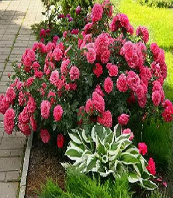При замовленні будь-яких троянд (що за ціною 55 грн) 10-ти і більше штук -1 шт - 49 грн.Квіти рожевого кольору (діаметром 5-6 см), чашоподібні, густомахрові, у великих суцвіттях (до 30 квіток), ароматні. Листочки зелено-бронзові, блискучі. Кущі низькі, пишні, ширина перевищує висоту. Цвітіння рясне і тривале, до заморозків. Сорт зимостійкий, стійкий до борошнистої роси і чорної плямистості.