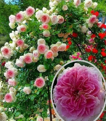 Ця красуня майстерно грає палітрою кольорів. Її ніжні кремово - рожеві бутони з зеленими зовнішніми пелюстками розкриваються в густомахрові квітки, які набувають переважно рожеві тони, лише зовнішні пелюстки залишають можливість контрастувати з світло-кремовими нотками. Широкі, дуже сильно хвилясті рожеві пелюстки згорнуті в центрі квітки, швидко розкриваються, але майже ніколи не показують серединку. Цвітіння дуже рясне, і як правило, відбувається кистями до 9 штук. Володіє прекрасною стійкістю до морозів і хвороб. Росте на родючих ґрунтах з гарним дренажем.Н: 2,0 м, d-1,0-1,5 м