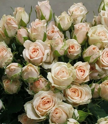 При замовленні будь-яких троянд (що за ціною 55 грн) 10-ти і більше штук -1 шт - 49 грн.Надзвичайно красива ніжна, троянда з безперервним і рясним цвітінням. Її колір - плавно переходить від ніжного рожево-персикового до світло-бежевого, а по краях може мати світло-салатову окантовку. Квіти дуже махрові, середнього розміру, в діаметрі складають близько 7 см. Досить ущільнені листя темно - зеленого кольору, густо покривають кущ. Сорт характеризується середньою стійкістю до захворювань і морозостійкістю.