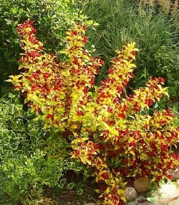 Свою назву цей сорт отримав за золотисто-зелене забарвлення загострених листочків. Квіти цього сорту - це дзвіночки яскраво-червоного кольору, які створюють прекрасне поєднання з листям. Віддає перевагу вологим, добре дренованим грунтам без застою води. Чудово виглядає і при солітерних посадках, і в групових композиціях ландшафтного дизайну, оживляючи пейзаж своїми свіжими фарбами.Н: 1,5-2,0 м, d-1.5 м