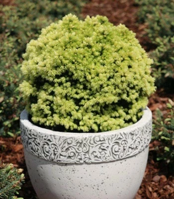 Привертає увагу, своєю майже ідеально - кулястою формою крони і яскраво-жовтим кольором весняних приростів. Хвоя ніжна, золотиста, поступово змінює забарвлення на зелене. Віддає перевагу помірно-вологому, злегка кислому грунту. Підходить для невеликих садків, рокаріїв, для висадки в контейнер, а також чудово виглядає привитою на штамбі. Морозостійкий.Для забезпечення гарного вигляду та росту рослини рекомендується вносити добрива. (Для ознайомлення заходьте в розділ ДОБРИВА, ЗАСОБИ ЗАХИСТУ, ГРУНТИ).