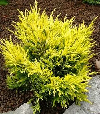 Широкий, щільний, карликовий сорт тарілкоподібної форми. Молода хвоя спочатку зелена, влітку-жовтіє, а взимку набуває бронзового відтінку. Пагони золотисті, розташовані рівномірно. Віддає перевагу родючим, з хорошим дренажем грунтам. Погано росте на важких ґрунтах. Посухо та морозостійкий. Ідеальний для озеленення схилів, як ґрунтопокривна рослина, посадок у кам'янистих садках, альпінаріях.Для забезпечення гарного вигляду та росту рослини рекомендується вносити добрива. (Для ознайомлення заходьте в розділ ДОБРИВА, ЗАСОБИ ЗАХИСТУ, ГРУНТИ)