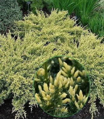Компактний сорт з унікальним поєднанням жовтого і блакитного забарвлення молодої і зрілої хвої. Форма крони виразно приплющена, подушковидна. Пагони ніжні, хвоя сіро-блакитна, в процесі росту яскраво-золотисто-жовта, що дає прекрасний колористичний ефект. До грунтів невибагливий, добре росте на свіжих, дренованих, помірно зволожених грунтах. Ідеальний для невеликих садів і альпінаріїв.Для забезпечення гарного вигляду та росту рослини рекомендується вносити добрива. (Для ознайомлення заходьте в розділ ДОБРИВА, ЗАСОБИ ЗАХИСТУ, ГРУНТИ).
