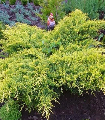 Відрізняється розкішною розкидистою кроною і горизонтально розташованими пагонами. Хвоя двох типів: голчаста і лускоподібна яскрава золотисто-жовта. Швидкість зростання середня. Маловимогливий до грунту і вологи. Чудовий для озеленення кам'янистих і невеликих присадибних садів.Для забезпечення гарного вигляду та росту рослини рекомендується вносити добрива. (Для ознайомлення заходьте в розділ ДОБРИВА, ЗАСОБИ ЗАХИСТУ, ГРУНТИ).
