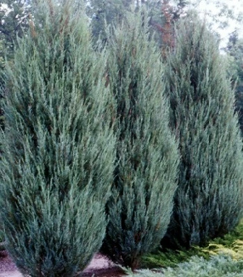 Характеризується вузькою стрункою формою і сильним зростанням. Пагони прямі, щільно прилягають до стовбура. Забарвлення синьо-зелене. Луски шишки зрощені, м'ясисті, ароматні при розтиранні. Ягоди ялівцю (шишкоягоди) розміром з горошину. Не вимогливий до грунту і вологи. Відмінний для живоплотів. Відстань між рослинами повинна становити від 0,5 до 2 м у високорослих форм. Ялівці надзвичайно популярні в ландшафтному дизайні і використовуються у різноманітних його формах.Для забезпечення гарного вигляду та росту рослини рекомендується вносити добрива. (Для ознайомлення заходьте в розділ ДОБРИВА, ЗАСОБИ ЗАХИСТУ, ГРУНТИ).