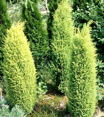 Сорт з щільною і стрункою вузько-колоновидною формою крони. Хвоя колюча, жовто-зелена, зимою жовто-коричнева. Віддає перевагу сонячним ділянкам, в тіні втрачає забарвлення хвої. До грунту не вимогливий. Морозостійкий. Добре переносить обрізку, що дозволяє створювати з нього приголомшливі садові композиції. Ідеально виглядає уздовж садових доріжок і алей, також непогано підходить і для одиночних посадок.Для забезпечення гарного вигляду та росту рослини рекомендується вносити добрива.(Для ознайомлення заходьте в розділ ДОБРИВА,ЗАСОБИ ЗАХИСТУ,ГРУНТИ).